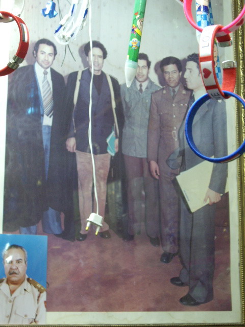 В лавке с бижутерией - коллективный портрет Революционного руководства Ливии. Слева направо: Мустафа аль-Харруби, Муаммар аль-Каддафи, аль-Хувейлди аль-Хмейди, Абу Бакр Юнес Джабер, Абдель Салам Джеллуд. В левом нижнем углу - фотография отца хозяина лавки