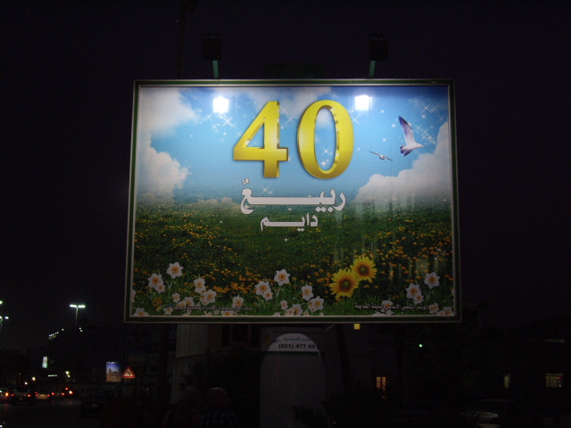 На щитах - поздравления с 40-й годовщиной революции, но кое-где появилась и коммерческая реклама, преимущественно - западных фирм (Самсунг, Пепси и т.п.)