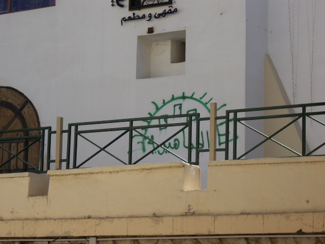 Патриотические граффити: Солнечный диск, три тома Зелёной книги и слово "Джамахирия"